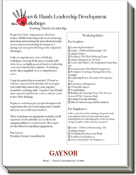 These workshops make a great addition to team retreats and most topics are also offered as speaking engagements. Are you giving the members of your leadership team the opportunities they need to fully develop their talents? Even a single 1/2 day workshop can take them to a new level. Call or write today to learn more.